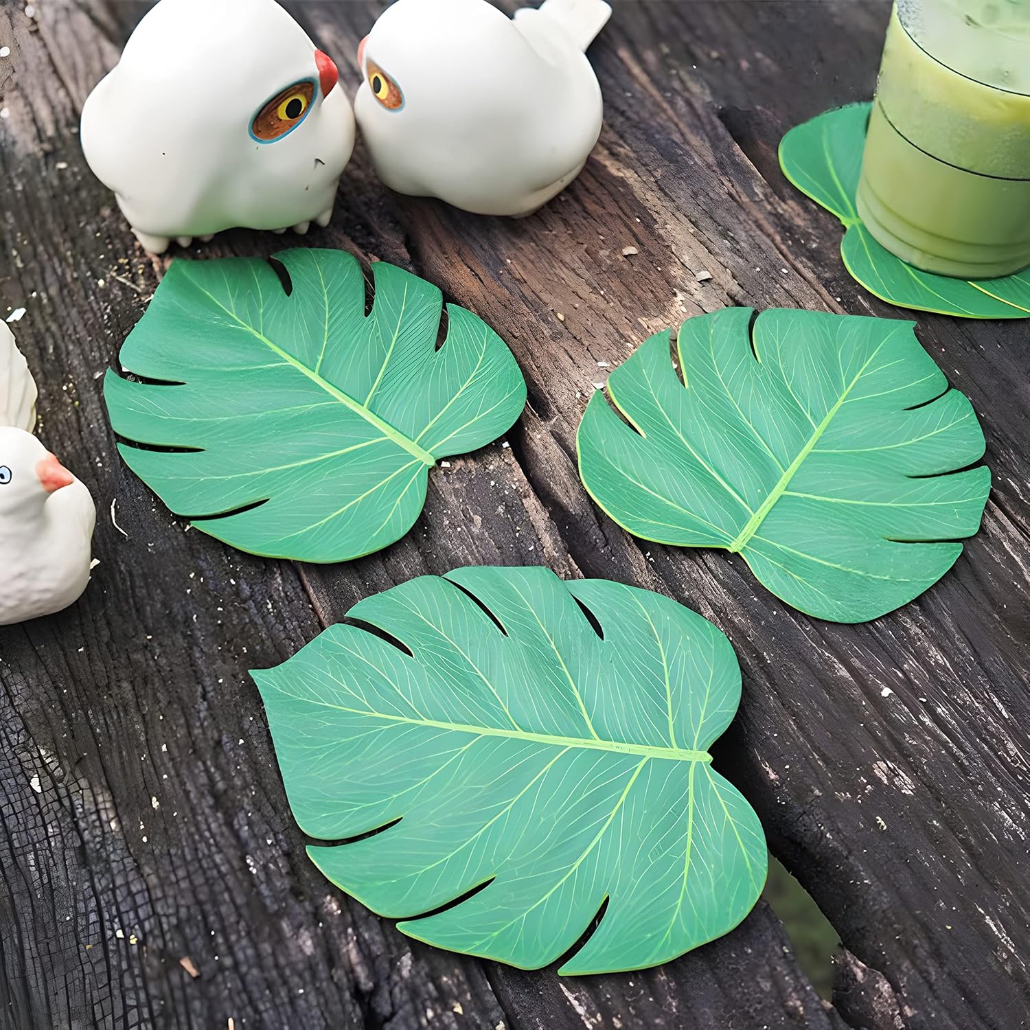 Set of 6 pieces. Easy to clean with plain water or wipe with a damp cloth. It can be kept for reuse many times. Avoid exposure to oil, flame and heat. If scratched directly with pointed or sharp objects may cause the color to peel off or torn leaves. The coasters should not be folded as they will cause creases.