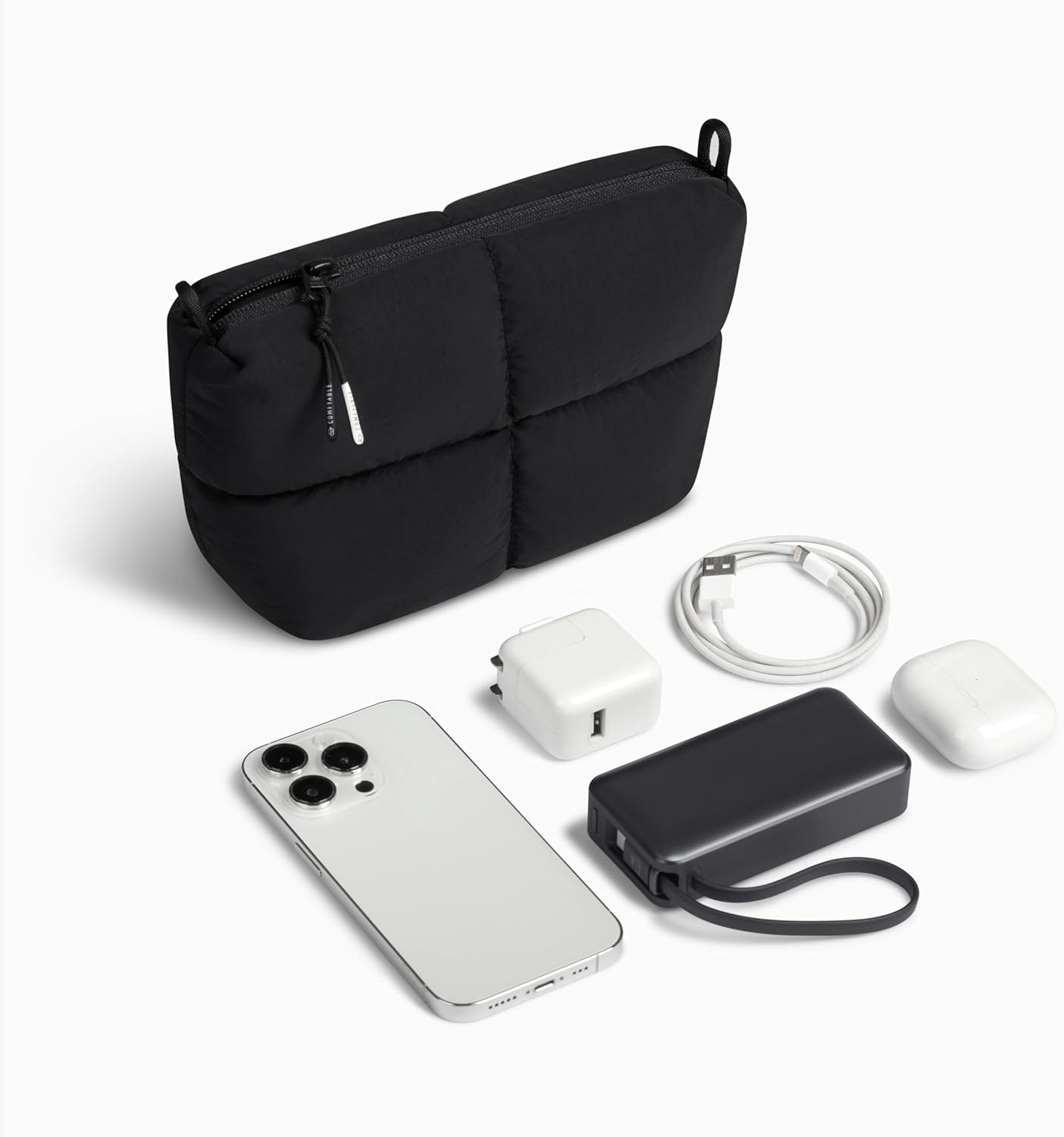 Our Comfyable cable organizer is designed in our signature Puffy style. Thoughtfully with multiple pockets, padded protection, and smooth YKK zipper closure, it keeps chargers, cables, and essentials tidy. Ideal for tech lovers, students, and commuters to organize their everyday digital essentials.