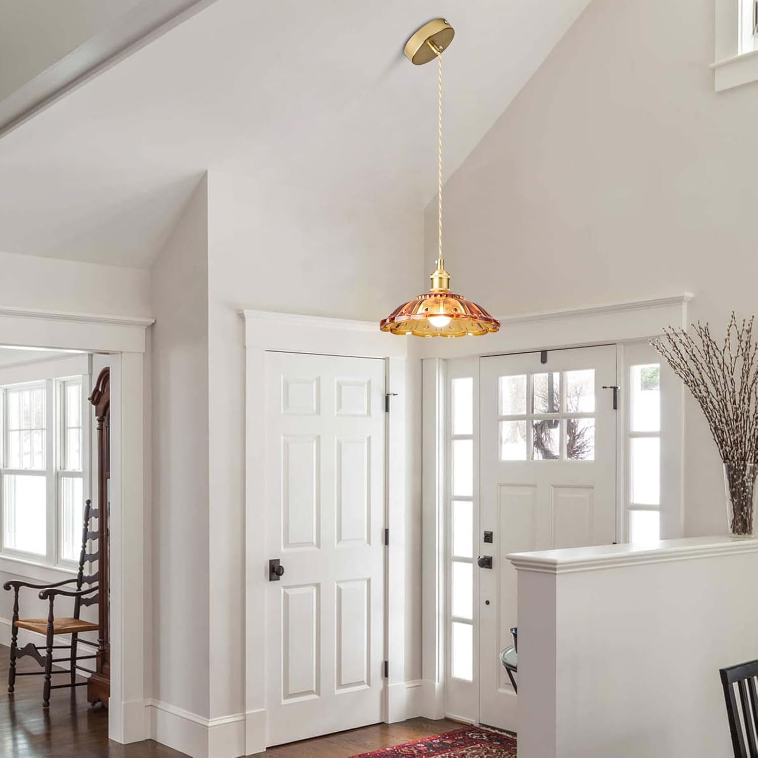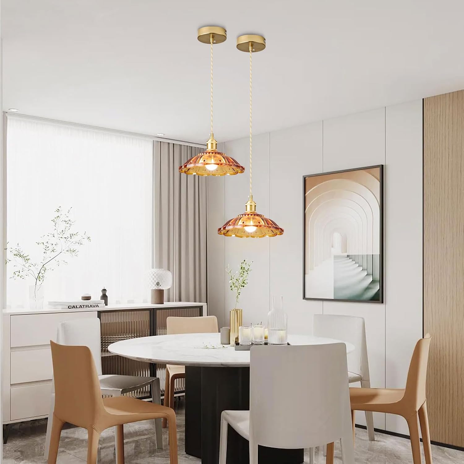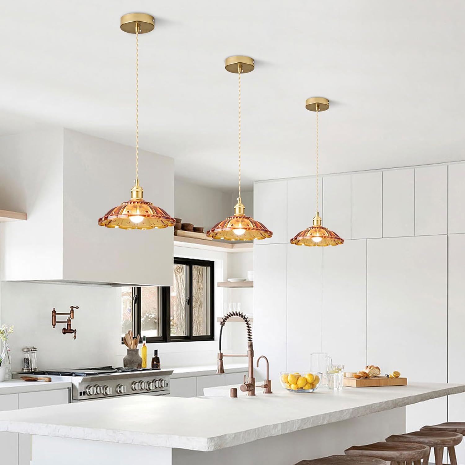 Gold Kitchen Island Light Adjustable Glass Shade Vintage Hanging Lamp over Island Chandelier for Dining Room Hallway