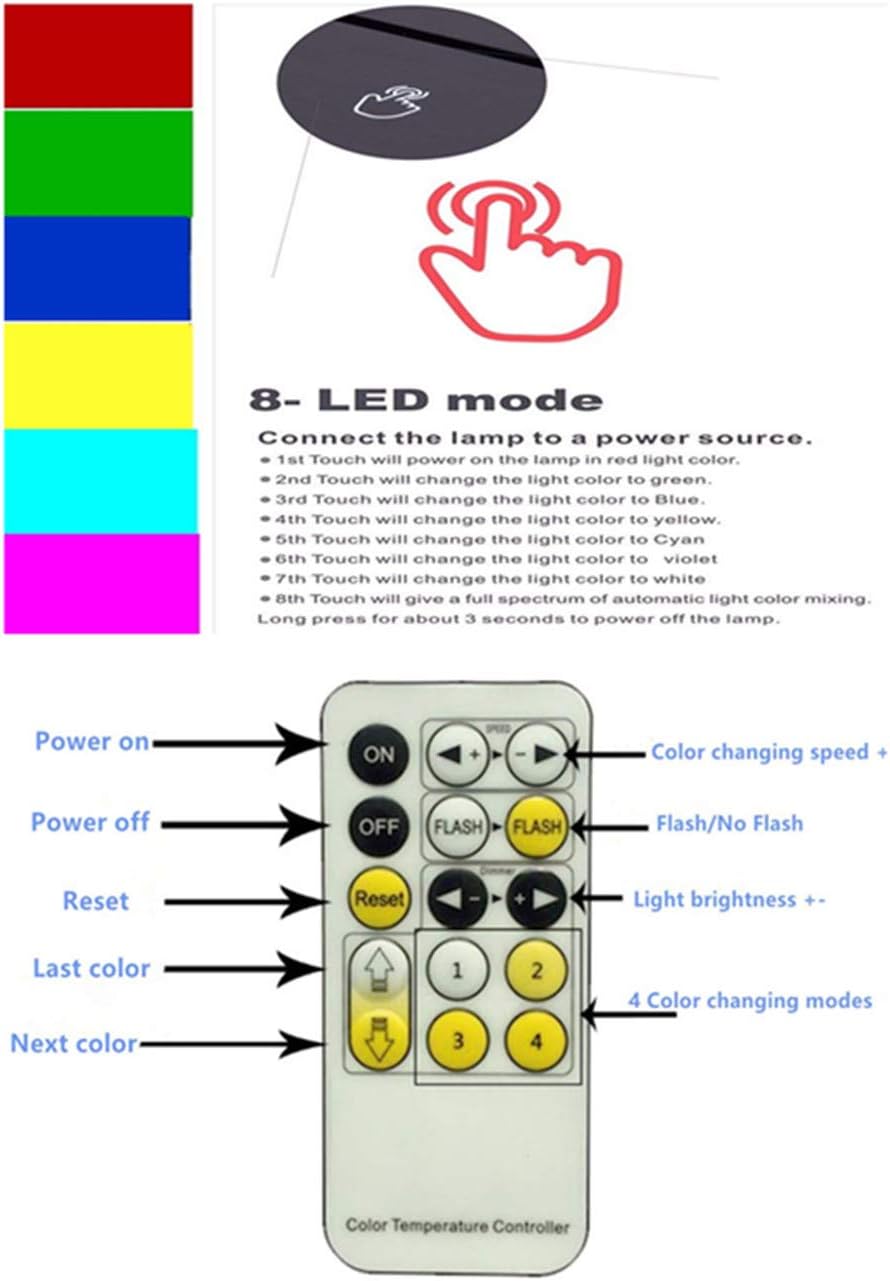 3D visual creative lamp is an innovative artistic atmosphere light,optical acrylic light guide plate engraving a variety of 2D graphics-3D visual impact, led source, import SCM process control, touch- sensitive switch, single or 7 colors changing. Widely used in various environment decorations, improve environmental artistic taste,showing warm fresh, fashion 3D visual impact. *Energy saving-Power spend: 0.012kw.h/24 hours; LED life span: 10000hours *Touch button-Press one time, one color light up, press it again, another color light up. *Automatically mode-Press the touch button to last color, then press it again, auto color changing mode works. *How to shut downe-Long touch the smart sensor switch to TURN OFF. *3D just Visual-the lamp itself is Flat Unique Lighting Effects Amazing Optical Visual Illusion Home Decor Lamp. *As Decorative Light-It can be put in bedroom, child room, living room, bar, shop, cafe, restaurant etc. Power:0.5W Voltage:5V. Weight:aprox 0.6lb Panel Material: Acrylic Base size:aprox 3.5*3.5*1.5inch Package size:aprox 8.6*6.3*2.2inch Color changing:red, green, blue, yellow, cyan,purple, white.can fixed one color or 7 color gradual changing. Packaging details: 1 *Arcylic Flat 1 *ABS Base 1 *Remote Control 1 *USB Cable(95cm) 1 *Manual NOTE : 1.The acrylic board has protective film on both sides. Please Tear off the protective film before use. 2 .3D just visual effect, the lamp itself is flat.