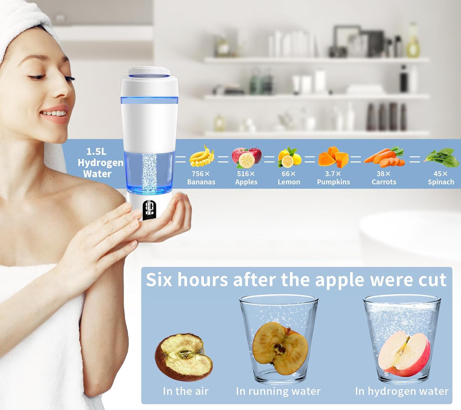 | Included Components | Hydrogen water bottle/USB-C cable/User manual |