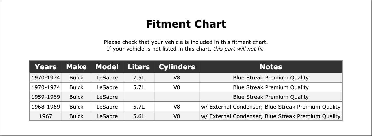 | Model | Ignition Contact Set and Condenser Kit |