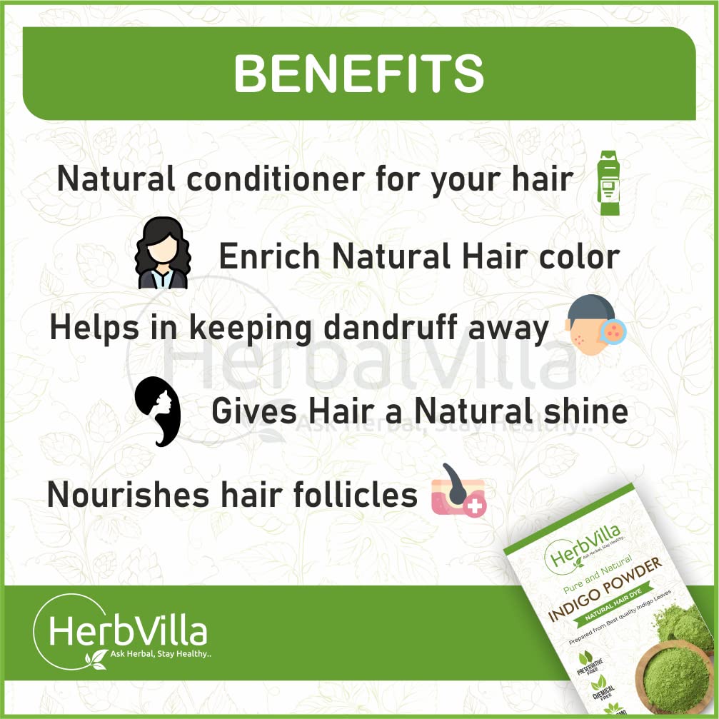 If you are looking for a natural alternative for chemical hair dyes, then indigo powder is a great choice. Indigo powder has amazing hair benefits and is got by powdering the leaves of indigo plant whose botanical name is Indigofera Tinctoria. The leaves produce dark blue dye and when applied as a hair dye after using henna, gives dark black colour.