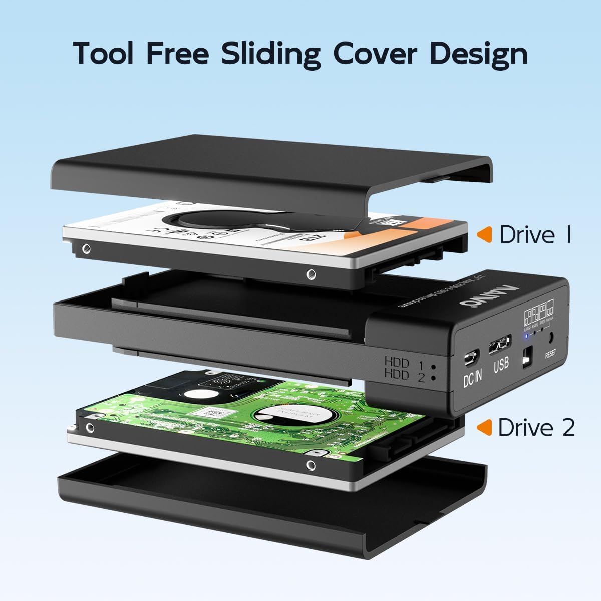 | BuiltIn Media | 1x Dual Bay RAID Hard Drive enclosure, 1x Screwdriver (for setting raid mode), 1x USB Type-A to Micro B Data Cable, 1x USB Type-A to Micro Power Cable |