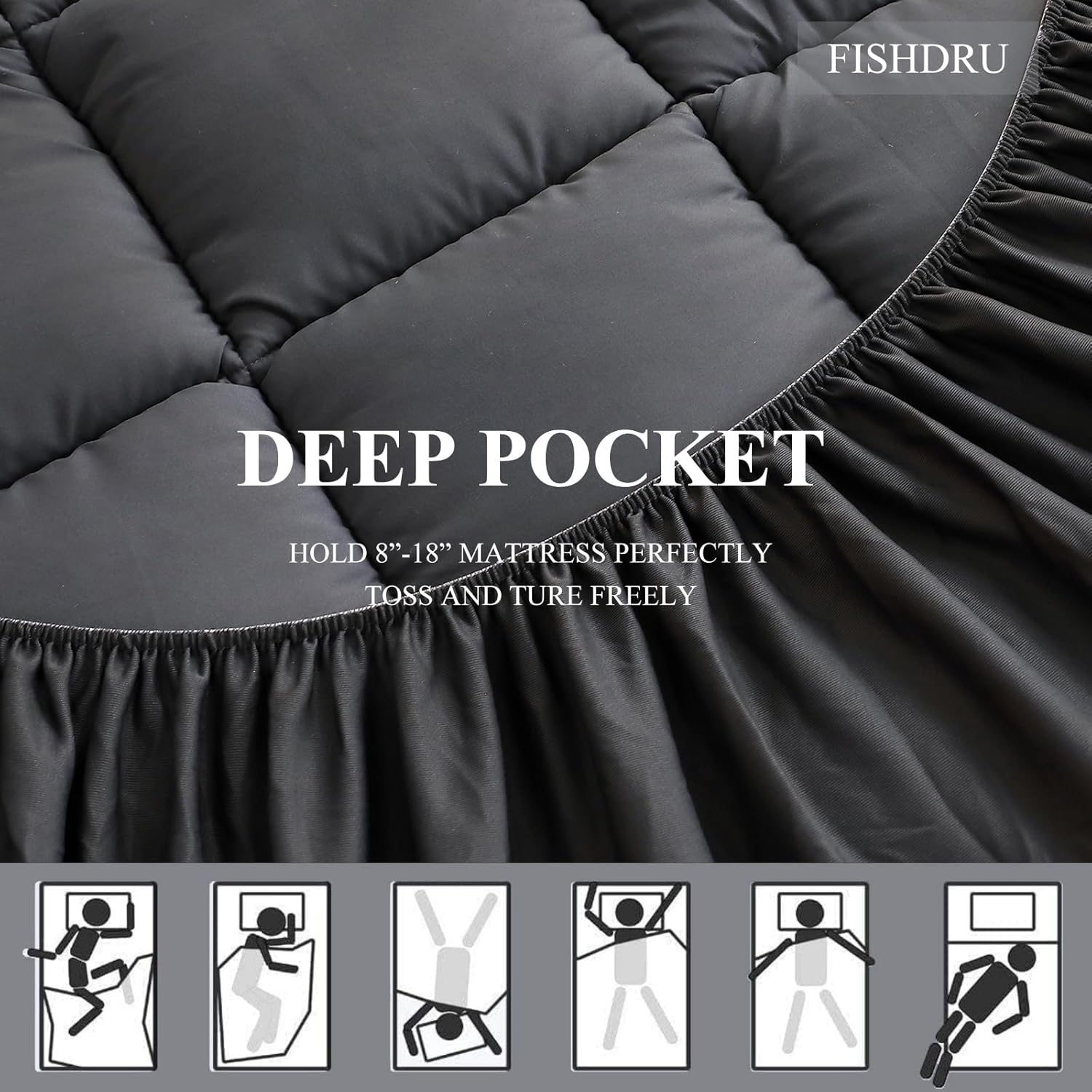 FISHDRU Quilted Fitted Mattress Pad, Quilted Fitted Premium Mattress Protector, Elastic Fitted Mattress Topper Protector and Cover Stretches up to 16 Inches Deep, Soft, Noiseless, Breathable, Machine Washable
