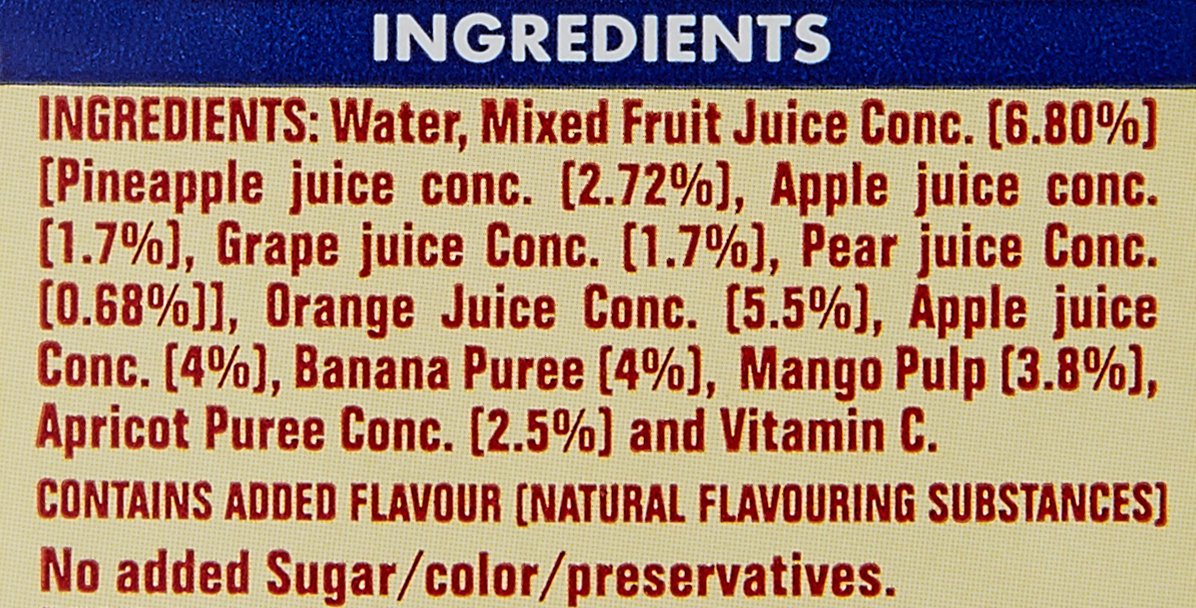 | Special Ingredients | Apple, Banana, Mango, Pineapple, Grapes, No Added Sugars |