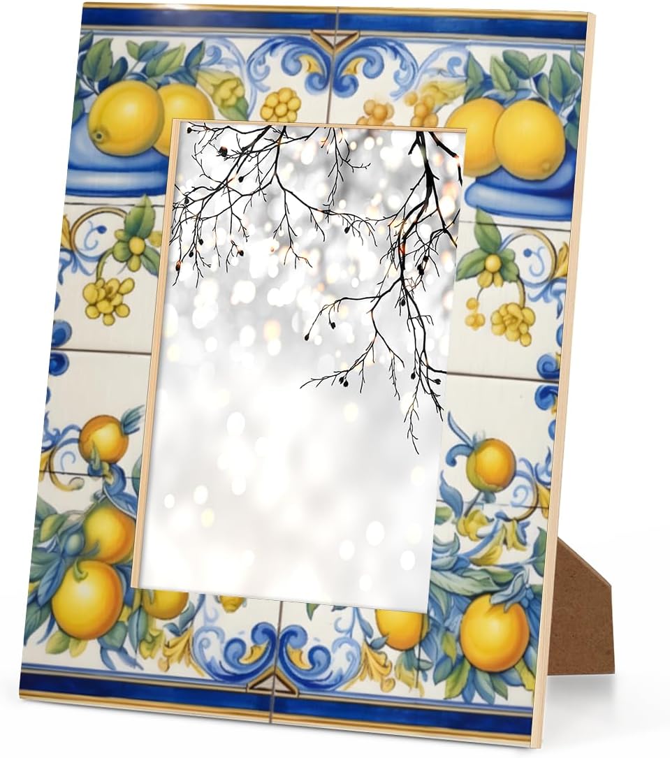 Picture Frame, Photo Frame, Wooden Picture Frame, Horizontal & Vertical Display Frames for Desktop Wall Collage Decor Various sizes available: 4x6 Picture Frame \ 5x7 Picture Frame \ 8x10 Picture Frame \ 11x14 Picture Frame Frame Material Picture Frame features clear acrylic cover instead of glass, ensuring safety and higher definition 2-way display allows vertical or horizontal placement on desktops or walls Easy-open tabs enable quick photo insertion and removal Resistant to deformation, providing superior protection against scratches, dust, and moisture Gift: Display family vacation photos, wedding pictures, or cherished memories from special occasions. Makes a thoughtful gift for loved ones, family, and friends. Ideal for home or office decor during housewarmings, baby showers, Christmas, Thanksgiving, Easter, St. Patrick's Day, birthdays, graduations, Valentine's Day, holidays, anniversaries, and weddings. Note: The transparent acrylic panel in the photo frame is protected on both sides with scratch-resistant film. Upon receiving the product, please remove the protective film from the acrylic panel before inserting your photo or image. Please note: Due to variations in lighting, monitor resolution, and environmental conditions, images may differ slightly from the actual product. The physical item shall prevail. This vibrant summer fruit-themed photo frame collection features designs showcasing lemons, strawberries, oranges, bananas, and kiwis, infusing your home with a sweet and refreshing ambiance. The vivid fruit prints on the frames are fade-resistant, ensuring cherished memories endure as timeless works of art.