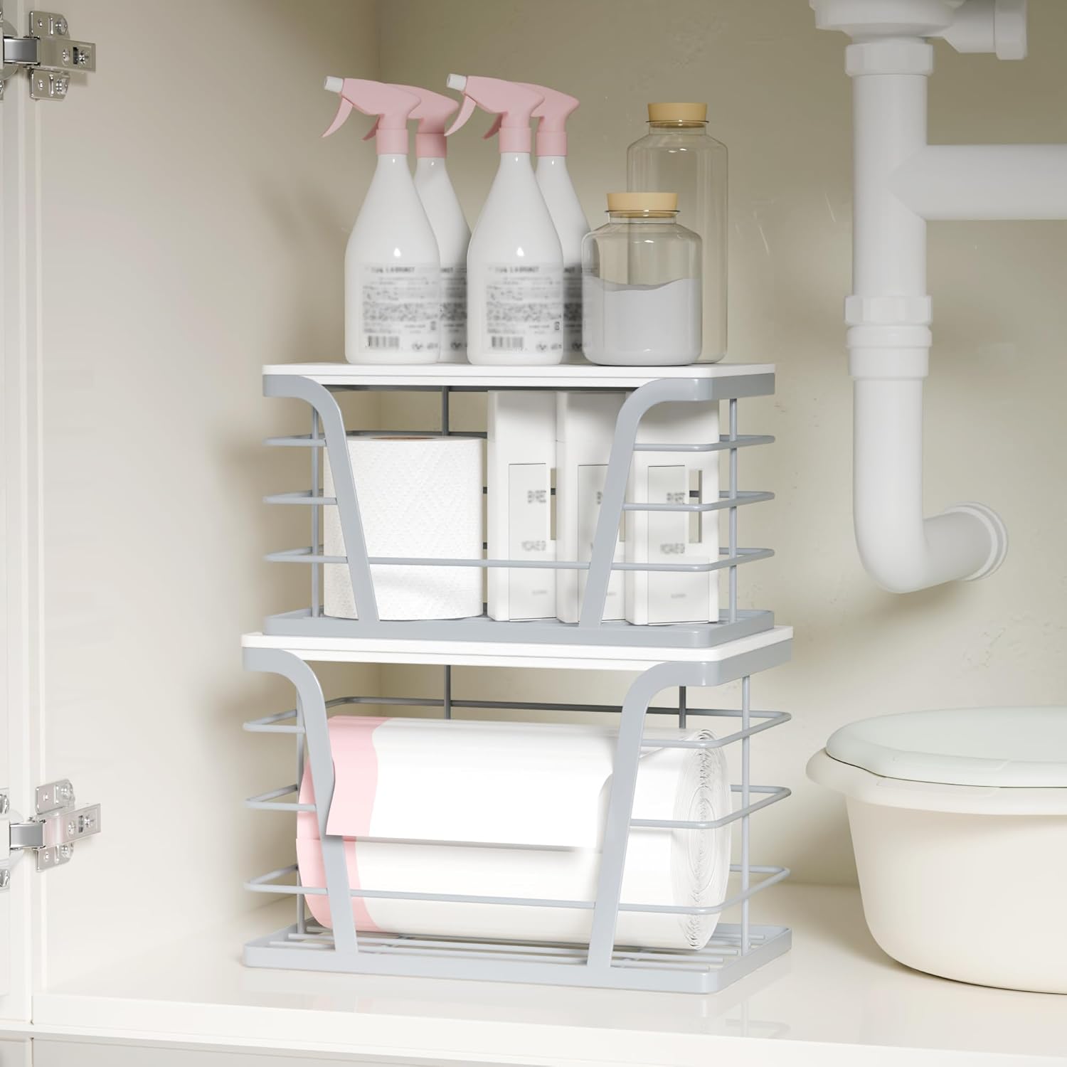 Simplify your daily storage with our 2 Pack Trash Bag Dispenser with Bamboo Top, crafted in a sleek gray finish that blends effortlessly into modern, minimalist, or industrial-style homes. Unlike ordinary storage, this set adds both function and elegance to your kitchen, laundry, pantry, or bathroom. This set comes in two practical sizes: the small unit (9.84"x5.51"x5.71") holds up to 90 count of 13-gallon rolls, while the large unit (10.63"x6.42"x7.09") accommodates 13/30/33-gallon bags. Use it as a garbage bag organizer to keep bags within reach and reduce clutter under the sink or in cabinets. Made with a bamboo cover and a sturdy stainless steel frame, the dispenser is waterproof and rust-resistant, ensuring durability even in humid kitchen or laundry environments. The bamboo top doubles as extra storage for small household items, while the basket’s open design makes it easy to check your supplies.