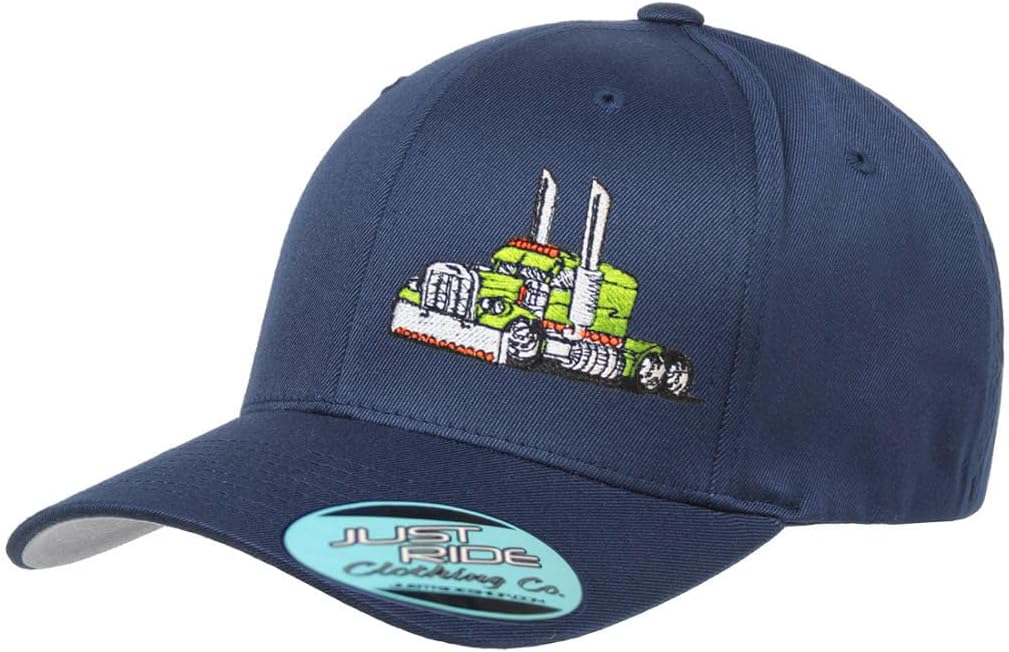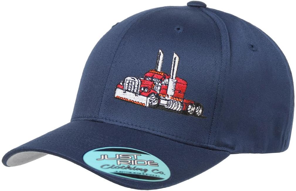 BLACK OR GREY FLEX FIT HAT WITH EMBROIDERED TRUCK DESIGN