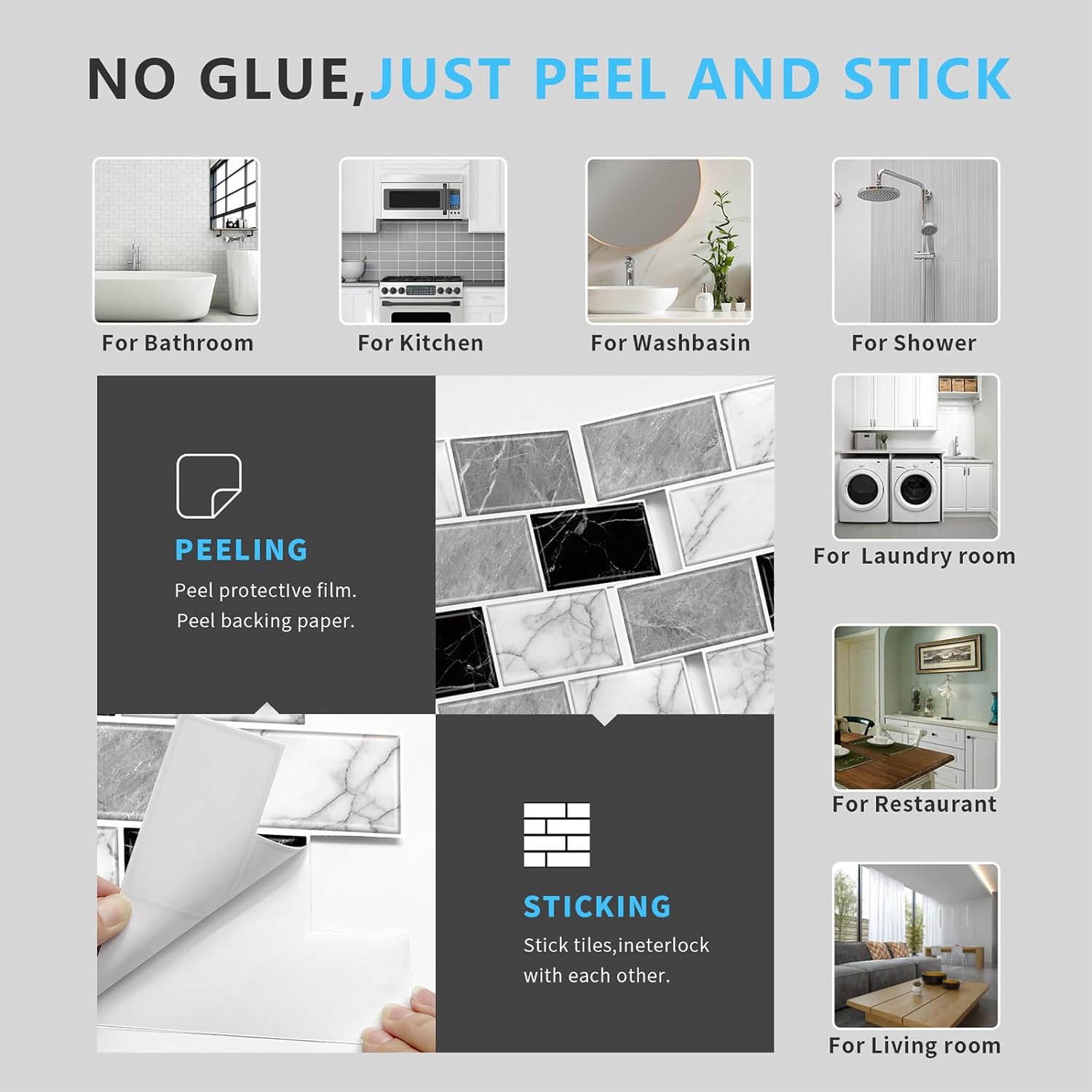 Transform your space with URCOLOR's 10-sheet peel and stick backsplash tile stickers, measuring 12" x 12" each. They're heat resistant and waterproof, making them perfect for kitchen island walls, bathroom backsplashes, and more. With a super strong adhesive, they stick firmly to smooth and lightly textured surfaces, and are easy to apply with no special tools or experience needed. Each sheet is 0.04 inches thick, and the package includes 10 sheets for a cost-effective, high-quality solution.
